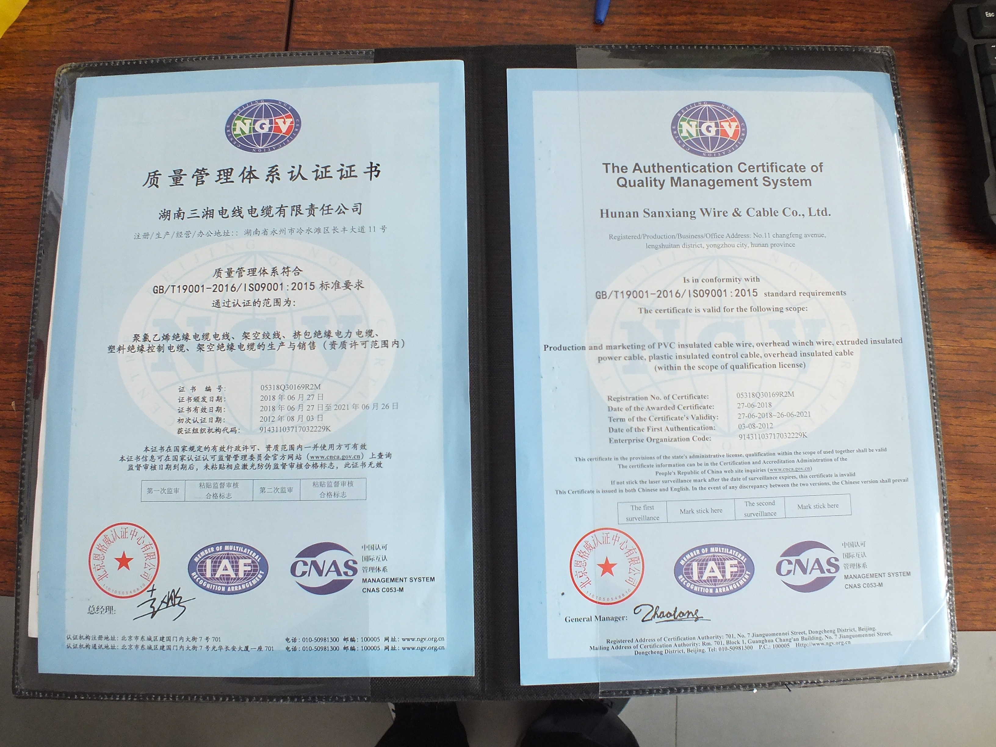 管理體系認(rèn)證證書